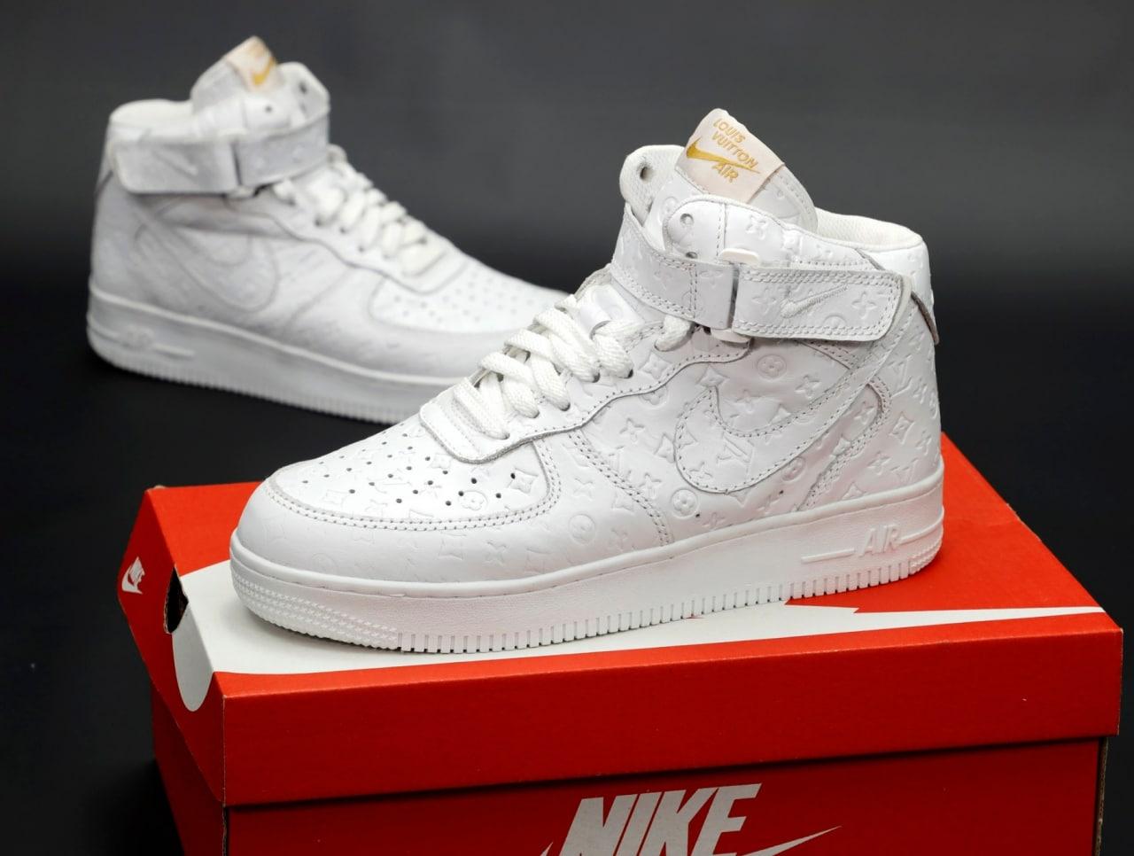 Отримайте цю позицію безкоштовно при покупці «Nike Air Force High Lois Vuitton White Жіночі та Чоловічі кросівки Найк Аїр Форс Луї Віттон Високі білі шкіра»